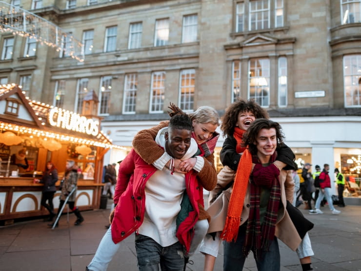 Looking for a blend of tradition and fun? Newcastle wraps up Christmas in true Geordie style. Stroll through the Christmas markets at Grey’s Monument and Old Eldon Square and admire the lights that illuminate the city’s streets. The highly anticipated, iconic Fenwick’s Christmas window enchants visitors of all ages, while the Life Science Centre’s ice rink adds a touch of frosty fun. Cosy up in traditional pubs or trendy cafés serving festive drinks, then explore the shops at Grainger Market for gifts. Newcastle truly captures Christmas with its warm Geordie spirit, mouth-watering food and fun activities for everyone to enjoy.